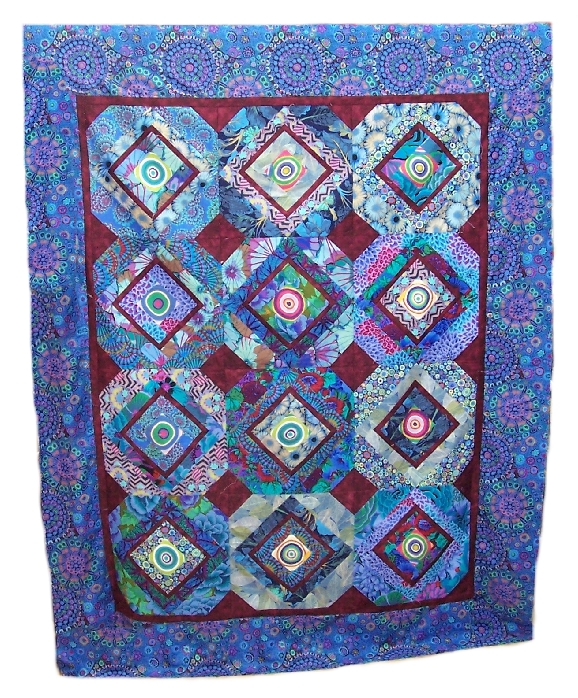 | Cinnamon & Ginger Kaffe Fassett beautiful prints used in this quilt. Kit includes fabrics, accent, border print and pattern. (Prints may vary slightly from those shown.) Quilt finished size – Throw 57” x 71” - Twin 71” x 86” Kit – Throw - $119.95 (Cdn.) - Twin - $189.95 (Cdn.) |